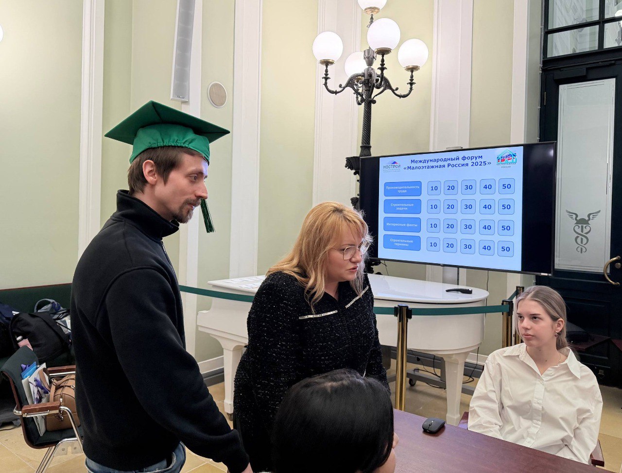 👆 В рамках VIII Международного форума «Малоэтажная Россия – 2025» , который проходит в Москве 2-3 декабря 2025 года при поддержке Минстроя России, состоялась 55-я юбилейная деловая игра для детей и юношества «Малоэтажная Академия». Особенностью этого года стал специальный блок от НОСТРОЙ, посвященный производительности труда в строительстве, который провела директор по развитию – руководитель Проектного офиса НОСТРОЙ Елена Парикова.